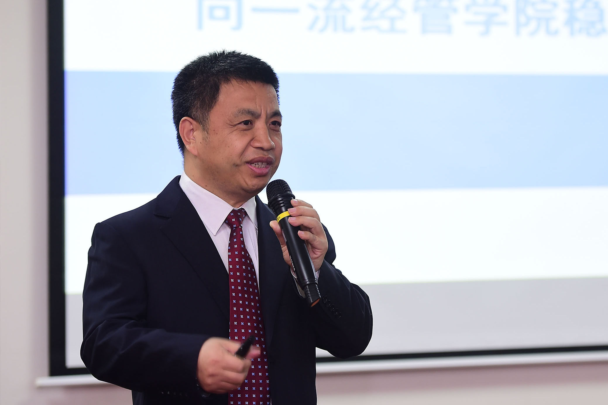 Right: BNU Business School Dean Lai Desheng Giving the Introductory Presentation